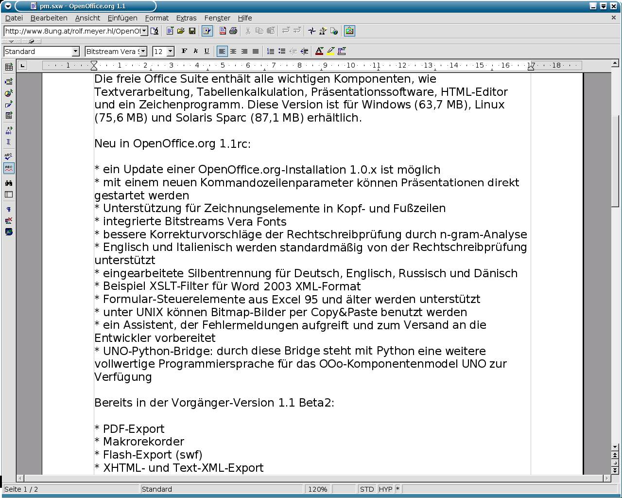 Screenshots - OpenOffice.org 1.1 - Bitstream-Vera -- eine mitgelieferte Schriftart